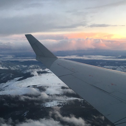 We were sardine packed at the back of this plane and I kind of hesitated when the flight attendant announced we could feel free to move around the plane to an empty seat before takeoff. I got up and found a spot, a window seat so as to be away from the aisle, the view now a secondary reasoning. And, where I heard laughter and play from all those Mormons behind me, I heard coughing in front of me and behind. I couldn’t bring my dad’s old compass set on the plane but they’re letting anyone who’s coughing board without care and without having to wear a mask?