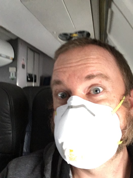 So, flying out on the 19th, my sister dropped me off at the airport and there were three people ahead of me at Detroit Metro waiting to get through security. An agoraphobic moment in an airport? Nobody in the corridors or on the walking sidewalks. I had a mask with me but I didn’t have it on. There were some youngsters taking selfies with their masks but it was all just for fun.